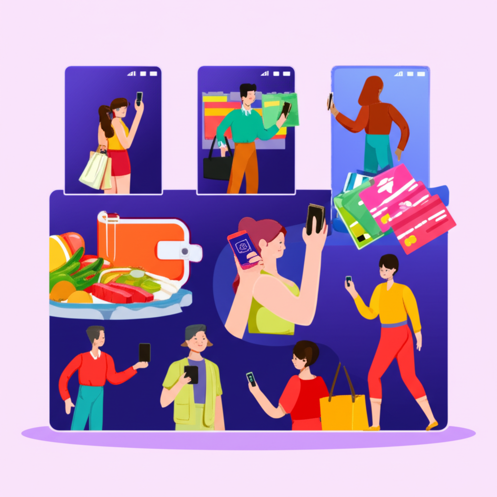 ภาพประกอบคนไทยหลากหลายใช้กระเป๋าเงินดิจิทัลสำหรับธุรกรรมประจำวัน