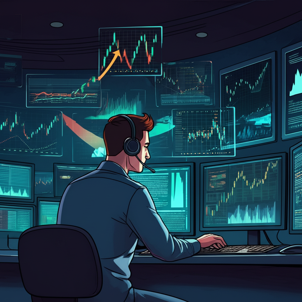 ภาพประกอบนักเทรดกำลังดูกราฟพร้อมคำสั่ง Buy Stop อัตโนมัติที่ช่วยจัดการความเสี่ยงและคว้าโอกาสในตลาดผันผวน
